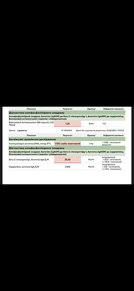 Понимаете у меня 4 беременности замершие (и на больших скроках) . Этот волчаночный антикоагулянт уже не первый раз слабо положительный. И АНА теперь слабо положительно. Но иммуноблот негативно. Вот теперь пойми, врачи тупые