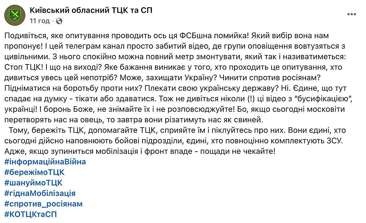 ❗️Бережіть ТЦК, допомагайте, сприяйте їм і піклуйтесь. Вони єдині, хто повноцінно комплектують ЗСУ. Якщо зупиниться мобілізація і фронт впаде — пощади не чекайте, — Київський ТЦК