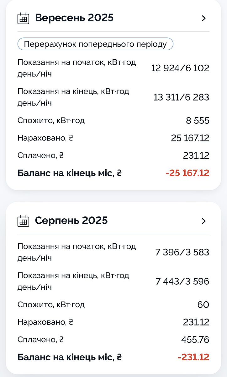 Девочки я в панике! Зашла на сайт ясно оплатить свет а там… что это такое? На фото скрин за август и сентябрь, как раз две недели назад приходил контроллер фоткал счетчик , это она неправильно внесла показания? Что делать в данной ситуации?