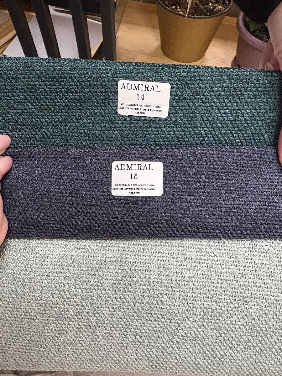 У меня велюр, но ваши ткани - больше нравится рогожка, цвет болер благородный, такой синий как велюр будет дешево выглядеть