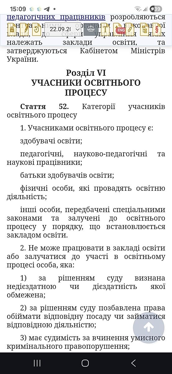 Відповідно до статті 52 розділу 6 Закону України “Про освіту”, батьки здобувачів освіти є учасниками освітнього процесу