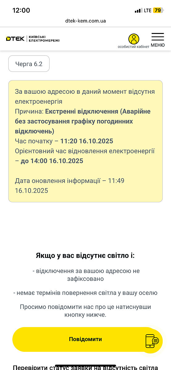 От у вас чітко написано - за вашою адресою екстрені відключення. У мене не так.