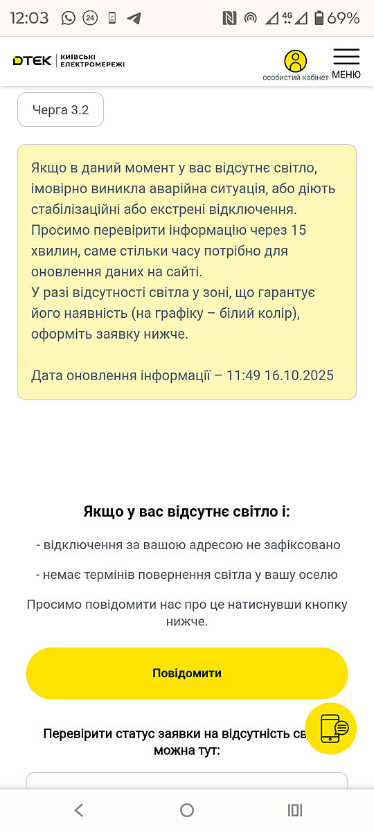 Дівчата, де ви дивитеся? Раніше на сайті ДТЕК була табличка, зручна така. Тепер немає. Зайшла в бот в телеграмі, там пише, що відключень за моєю адресою немає. А воно є, і в сусідньому будинку на одній лінії з нами теж немає.