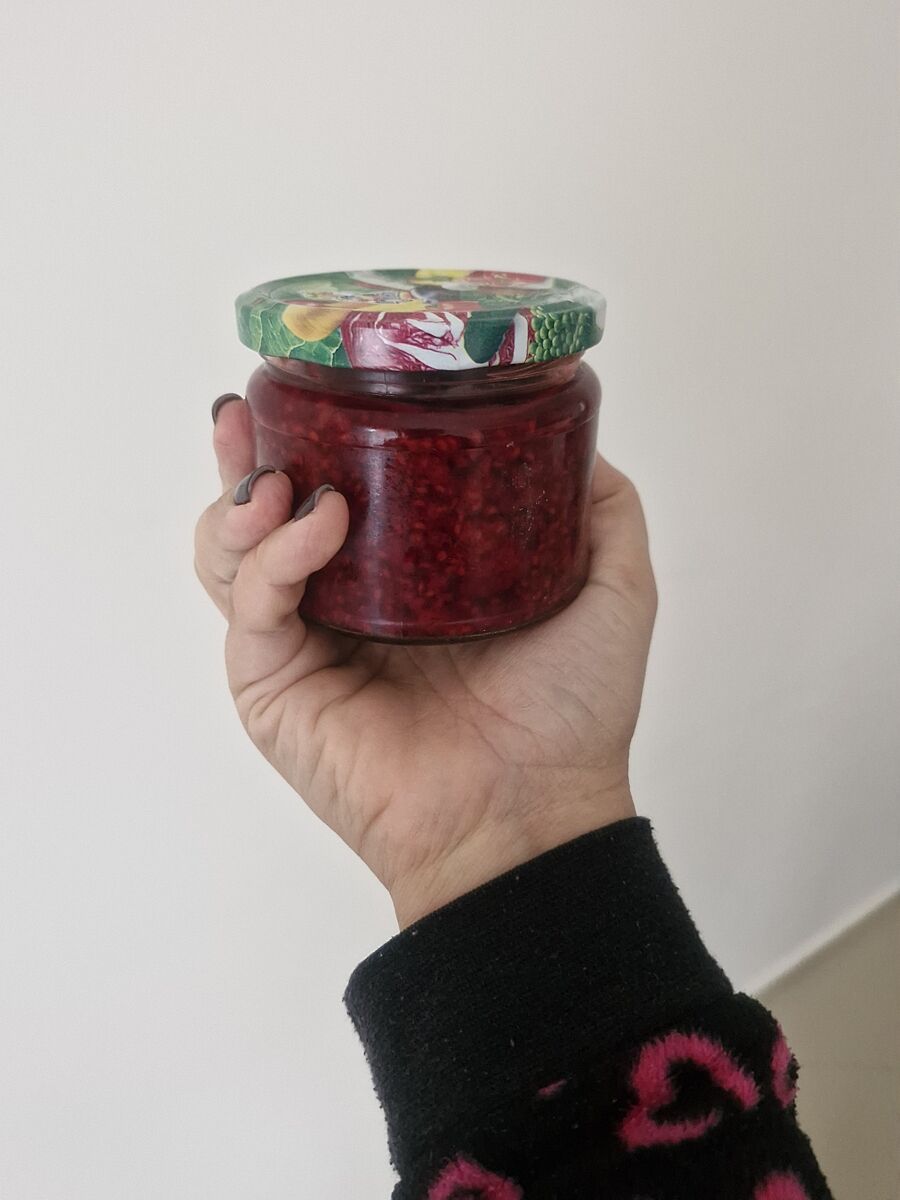 М´ясо по 220 на вихідних брала, 200 грн на чай, каву, варення/ мед достатньо, ще й лишиться. Якщо ви не по банці на людину з´їдаєте за раз, звісно. Отакої баночки (0.33) моїм трьом вініпухам на три рази вистачає до млинців/ сирників. Варення сама варила з домашньої малини, якої досі дуууже багато.