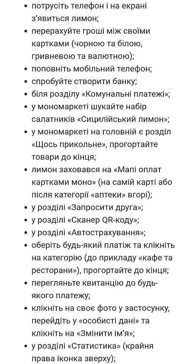 45 зібрала і кинула. У мене в Моно майже ніякої активності, а там пишуть, що один або навіть два лимони в розділі Перевести Кешбек. А у мене кешбеку - 0 грн. Чи є сенс шукати максимум 48 лимонів, якщо 50 у тебе все одно ніяк не вийде?