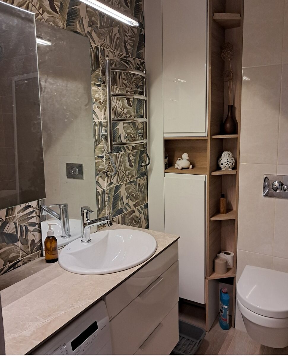 В туалеті руки промити, не вмиватися , думаю не дуже забризкається. Живемо двоє дорослих
