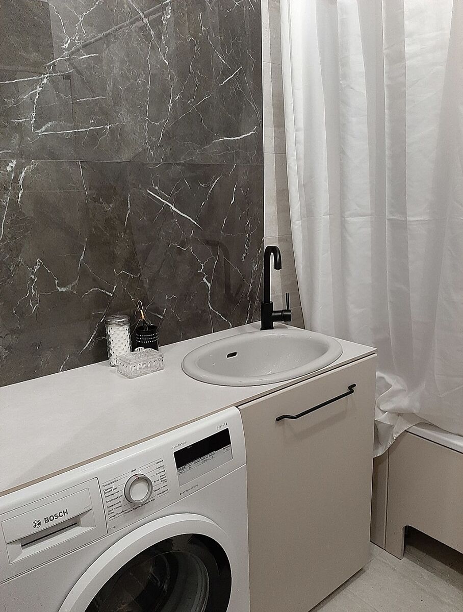В мене так і зроблено, дешево і сердито. Вже 6 років в експлуатації, нічого ніде не потріскалось, і в тому році на іншій квартирі. Робили як врізні, так і на стільницю. Показую всі варіанти, може надумаєте інший тип раковини брати. Єдина різниця, що під врізку робили додатково підложку. На останньому фото без підложки, просто керамограніт наверх підвісної тумби.