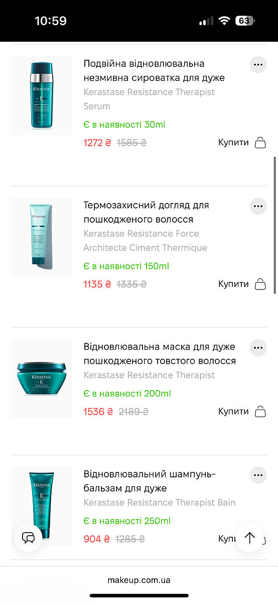 Серія прем´єр хороша: в мене був пре шампунь, шампунь та маска . Із шампунів ще світло зелений резістанс хороший та темно- зелений для чутливої шкіри голови.