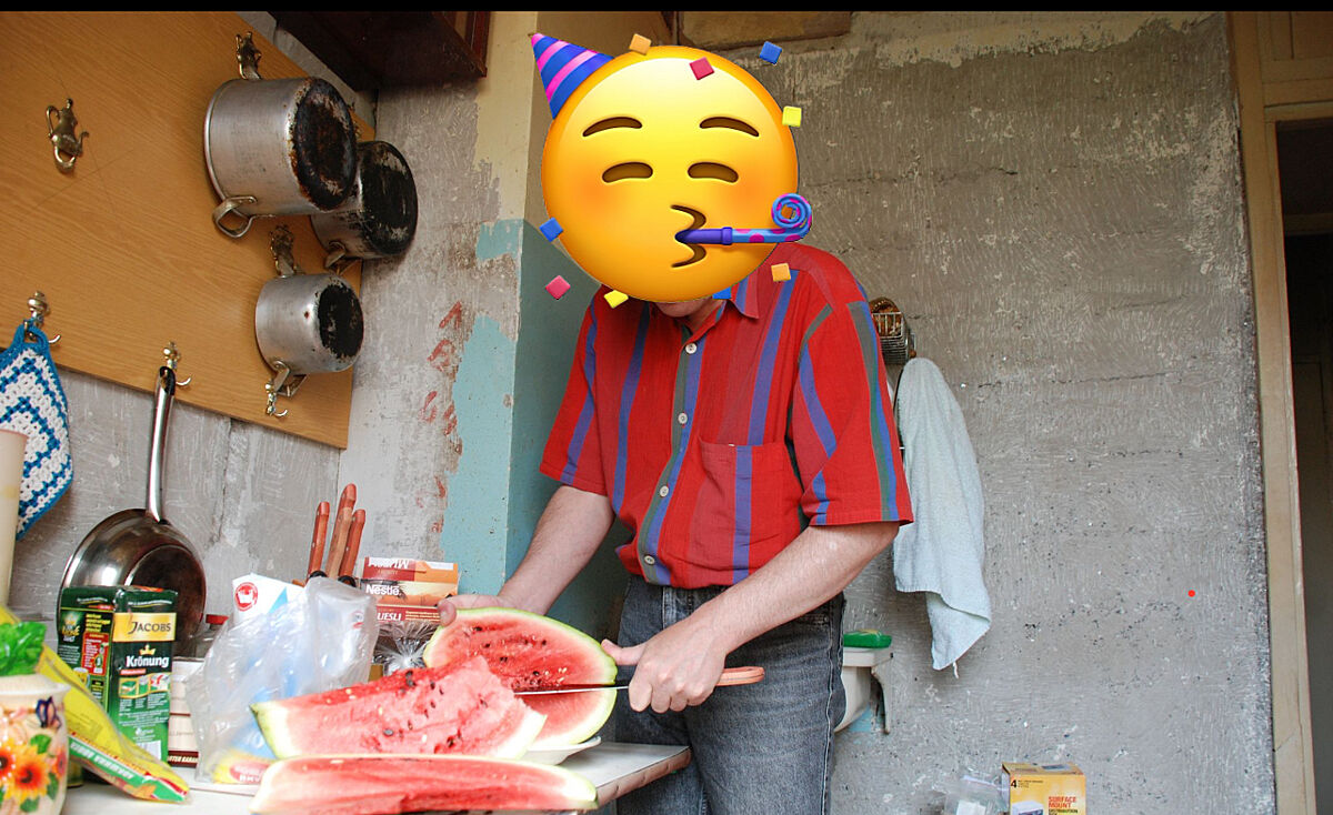 Ремонту 40 лет, мебели 60. Мужчина очень бледный, видно, что ни только на Мальдивы, но и на улицу года 4 почти не выходит днем. Круги вокруг глаз - проверьте почки и печень.