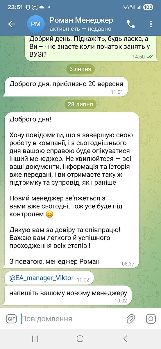 Для тих батьків, у кого діти вступають, хочу пояснити. Мені вступ в дві інші країни обійшовся в копійки, ти контролюєш вступний кабінет, ти контролюєш всі доки. Мені доводилось писати самостійно до університету, щоб дізнатись остаточну дату подачі доків. Менеджери змінювались, я мала шукати нашого) проте, коли залишила коментар на youtube, з´явились відразу)