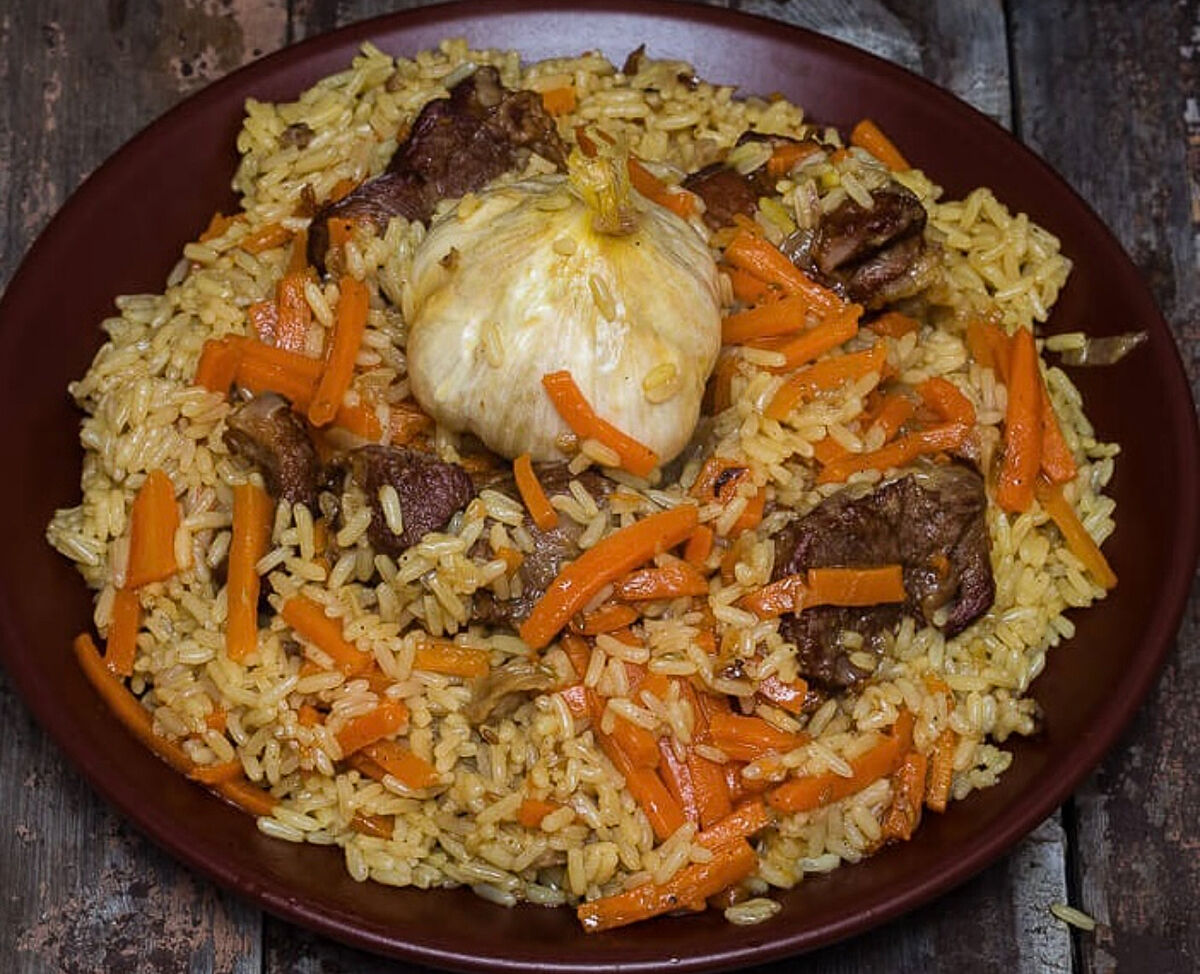 Мой коллега узбек (по отцу). В плов добавляет немного куркумы (четверть чайной ложки) для золотисто-желтого оттенка риса, а если нужен розовато-оранжевый цвет, к этому еще добавляется немного сладкой паприки.