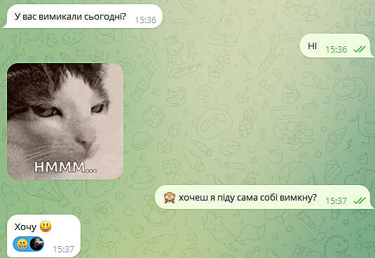 Всьому місту вимикають, а моєму будинку чомусь ні.. Сьогодні з подружкою спілкувалися, їй за день двічі вимикали.