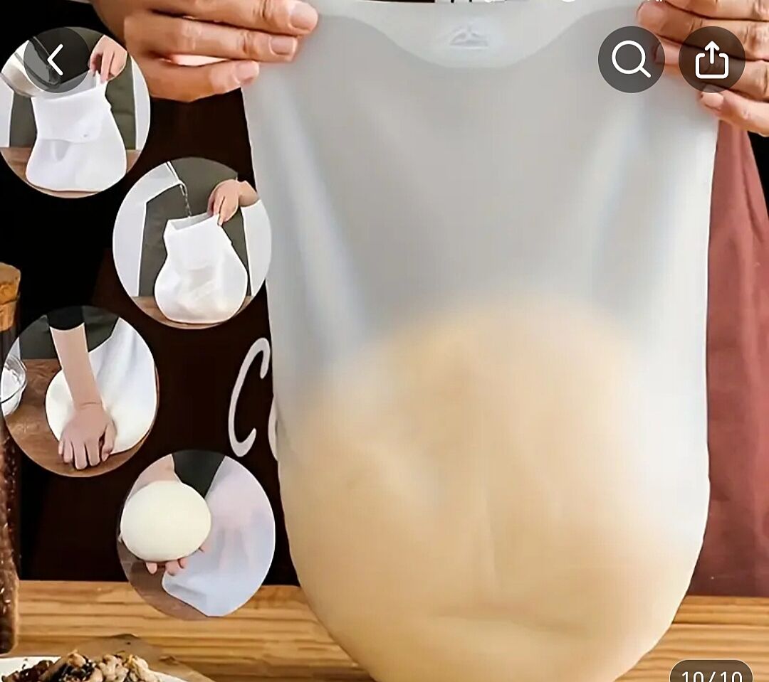 Ви ж розумієте, шо якщо тісто клейке, то хоч три мішки, а воно просто розмажеться по мішку, прилипне не до рук, а до мішка, зішкрібатимете потім?) І стіл чи миску легше помити, ніж мішок. Не бачу сенсу. Це ж не те, шо воно саме місить. Ви ьак само працюєте, тільки одна різниця, що миєте не руки, а мішок - але це абсурд, я краще руки помию. А взагалі, є недорогі тістоміси в оплату частинами