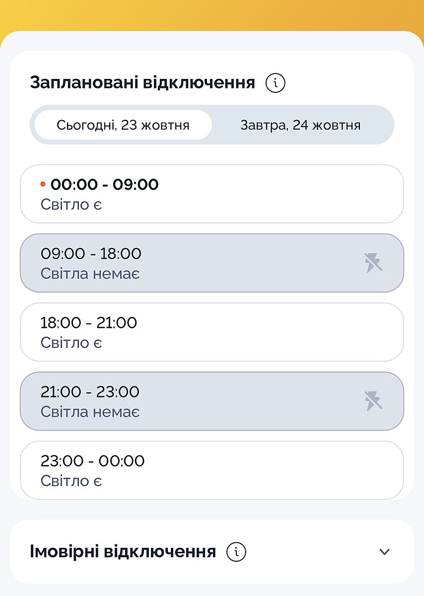 І графіки діють з 7 до 23 години. Ціла ніч на електричні роботи)))