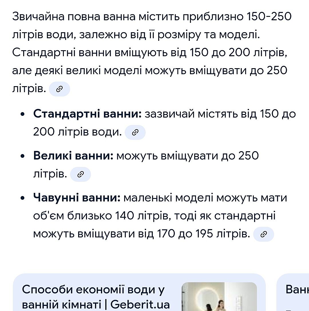 Гугл выдал что стандартный объем ванны 150-200 л🤷