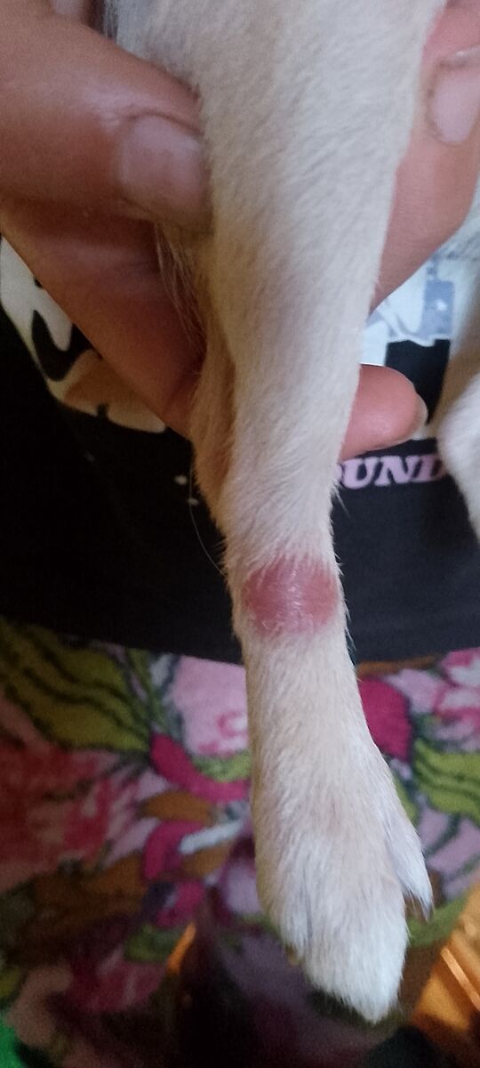 Друзья, помогите пожалуйста! У нашей любимой собачки чихуа появился участок без шерсти на лапке, буквально за сутки.