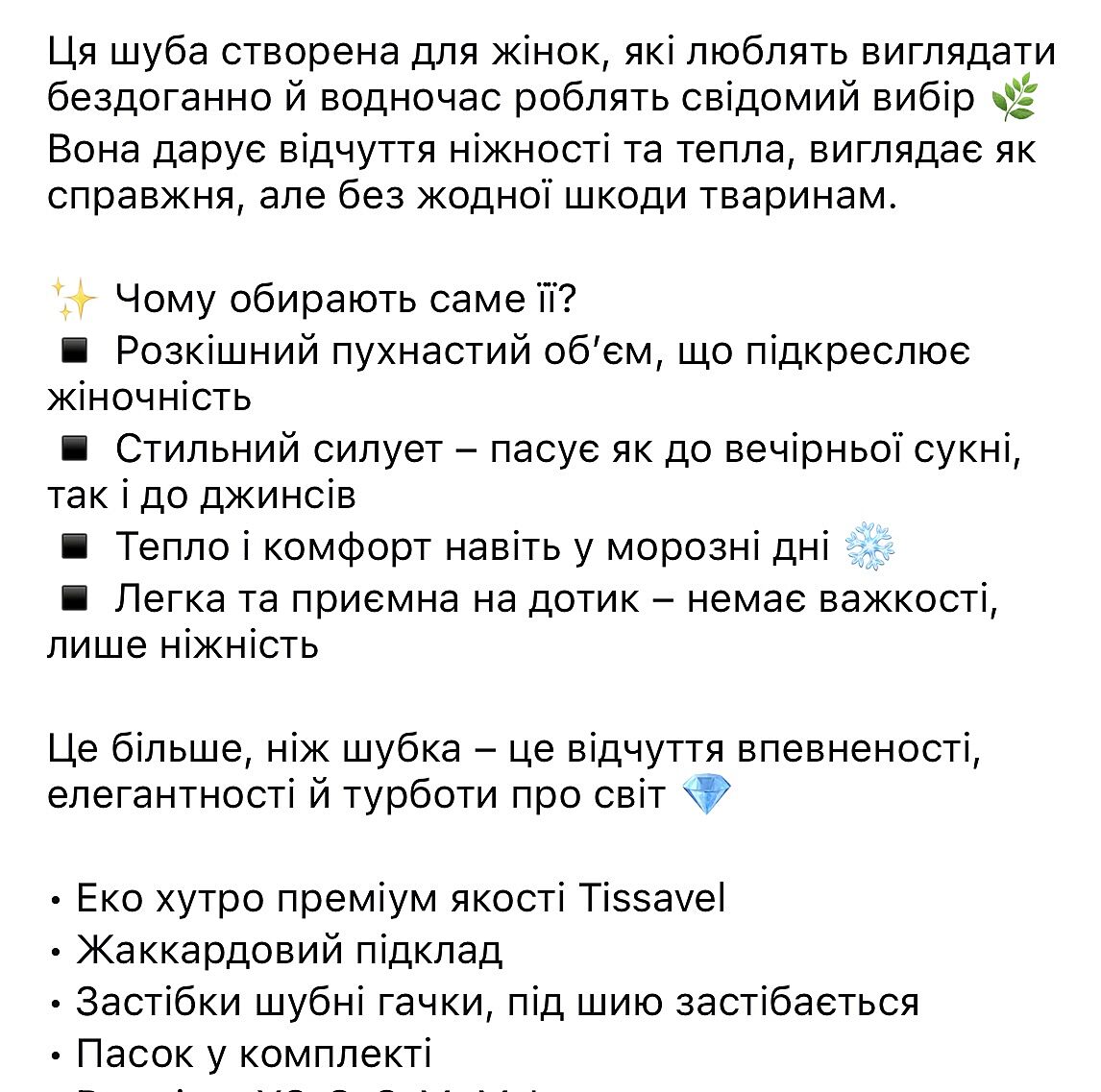 У моєї доньки от така світла шуба, вона на таку погоду,як зараз, максимум до +5-+10. Хіба там є ще утеплювач, але боюся з утеплювачем це хутро не буде вже елегантно виглядати. Я б на вашому місці тоді дивилася б в бік пальто з високим відсотком вовни в складі