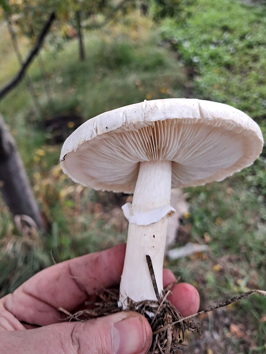 Я у себе на дачі вчора такі знайшла, свекруха сказала польові печериці. Чоловік сказав їсти їх не буде, я віддала свекрусі.