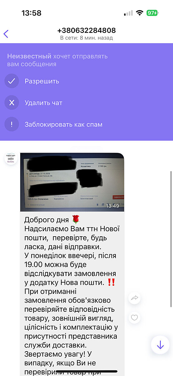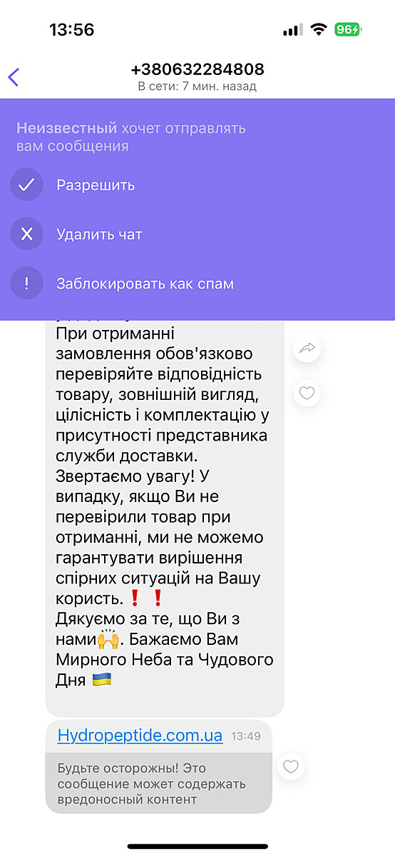 Вы заказывали, вам присылали тоже на Вайбер с обычного номера смс?