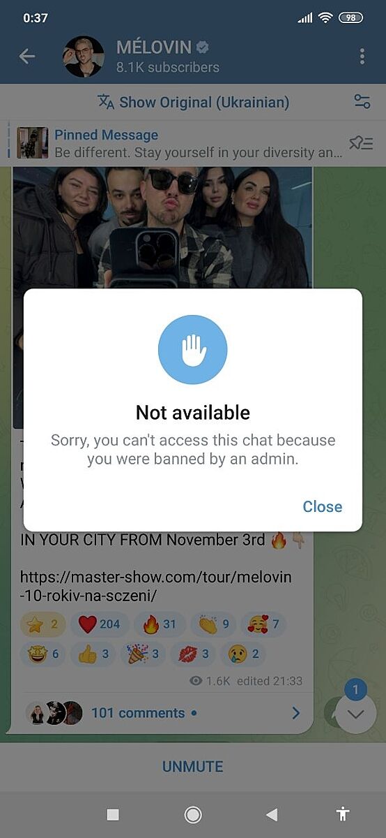 Меня забанил Меловин. А я всего лишь написала что ему надо сделать нормальный
