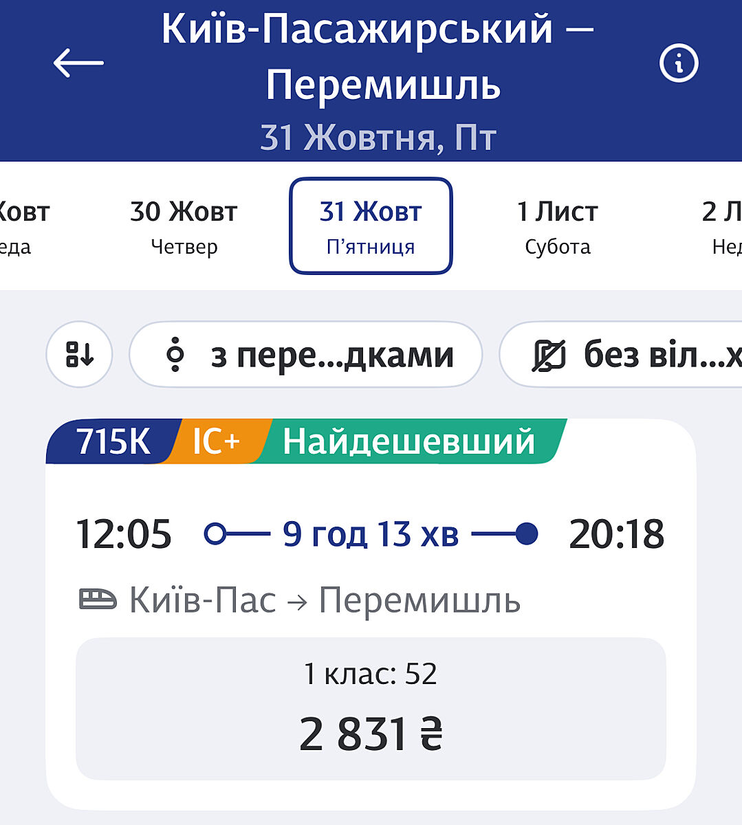 Я даже смотрела вначала октября, за 30-20 дней, как пишут в УЗ. Нету билетов на 31 октября((. Осталось 4 дня и совсем 0, все разобрали((