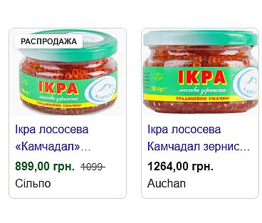 Там є камчадал у склі 899 за 185 грам, якщо браті 2, то виходить 450. У ашані ця ікра 1265 за банку. Але ця позиція теж мало де залишилася.
