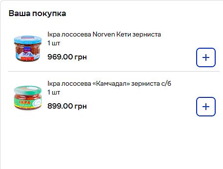 Я ж кажу, що не все є у наявності, ви можете на бачити у своєму сільпо ті позиції, які є в інших магазинах, я на сайті з 8 ранку, дещо встигла взяти, дещо розібрали на очах. Нижче скрин, у сільпо зараз ця ікра вийде 450 грн за 185 грам.