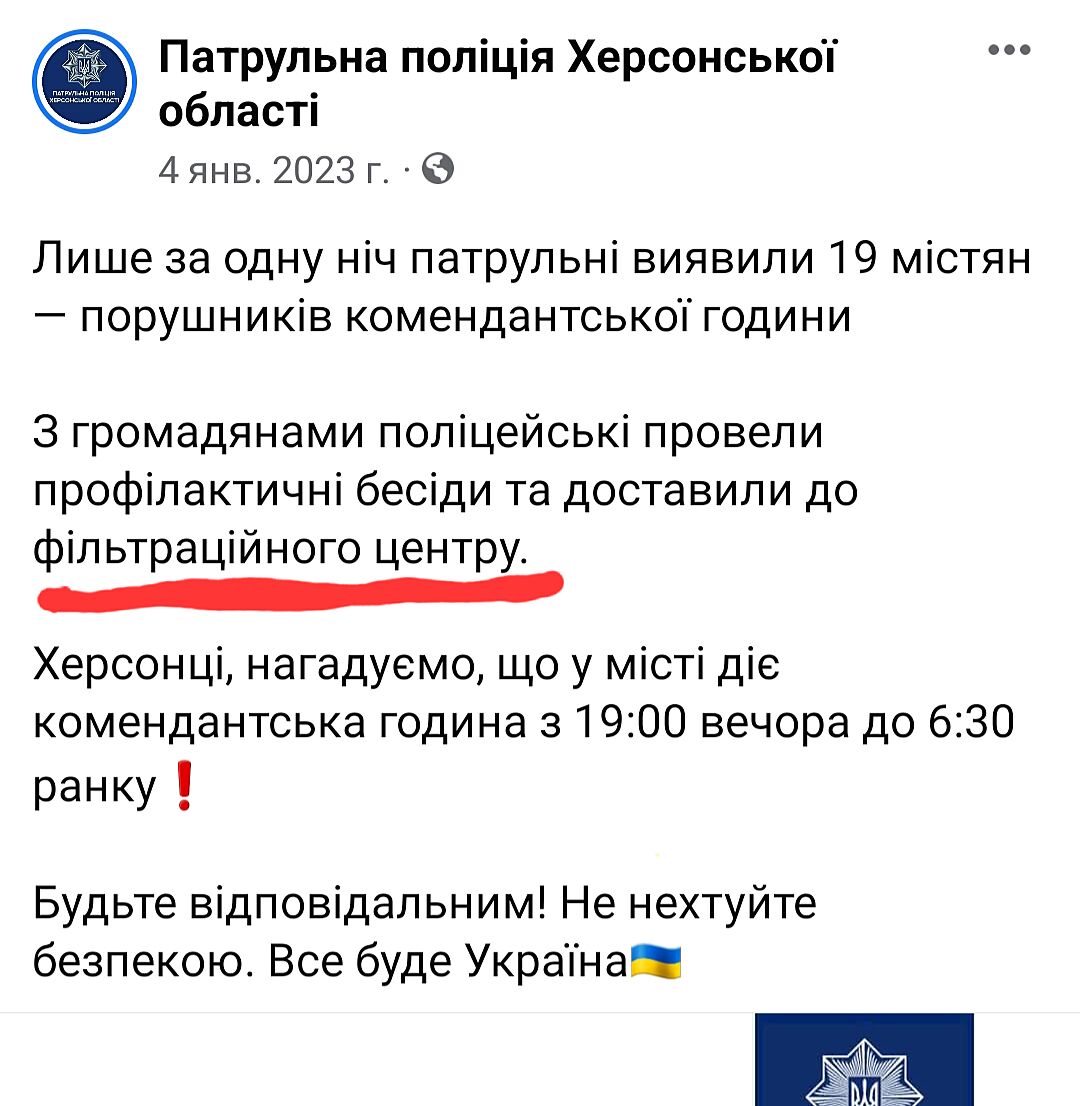 В Херсоне скоро будет как в Китае, почти на каждом перекрёстке куча камер видеонаблюдения, куча полиции, которая ходит по квартирам/домам, дркапывается на улице с вопросами: ’а что вы делали в оккупации?’ Государство считает, раз были в оккупации -значит потенциально неблагонадежные. Как-то так.