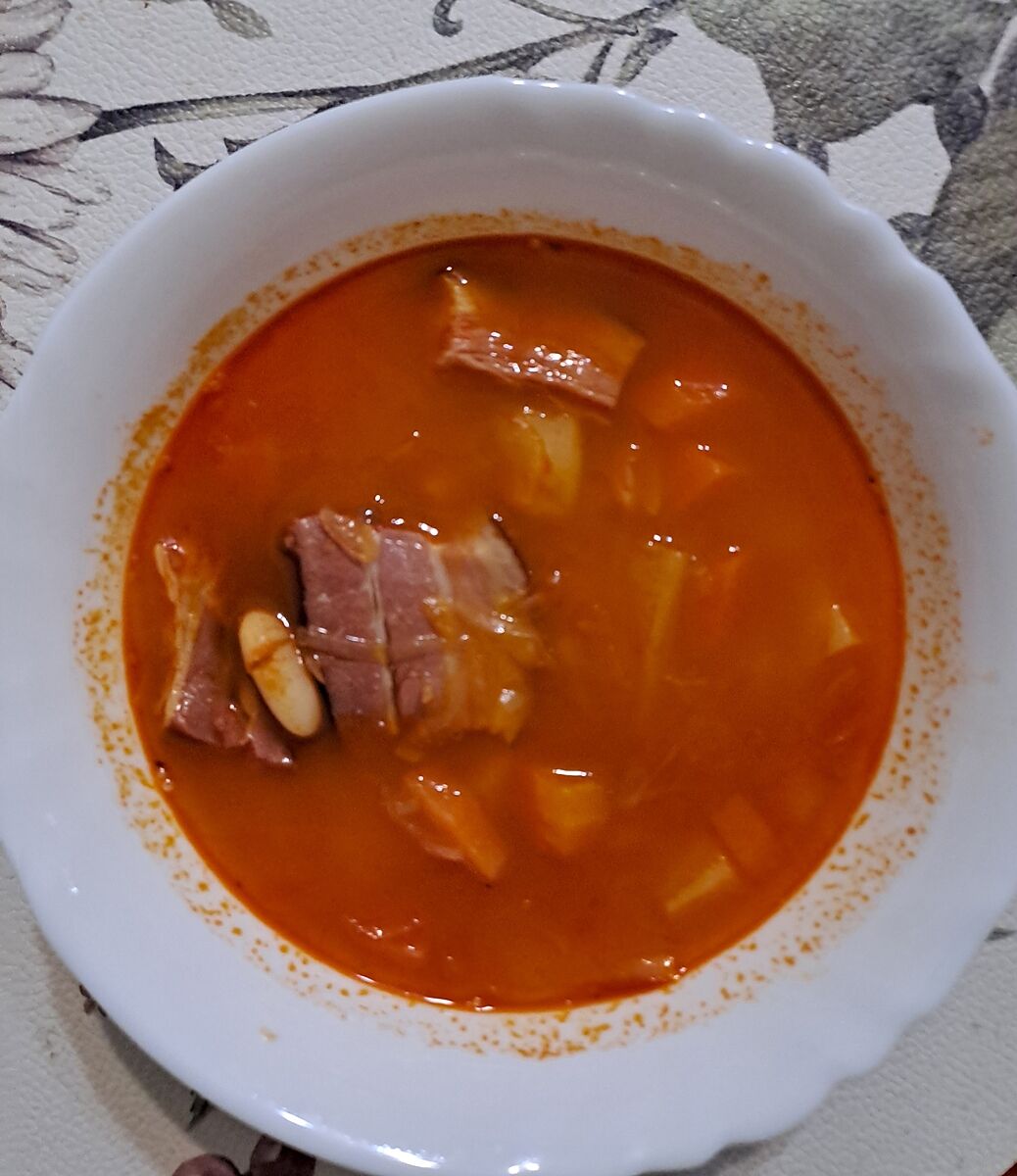 Там квасоля, квашена капуста, копчені реберця, копчена паприка. Смакота