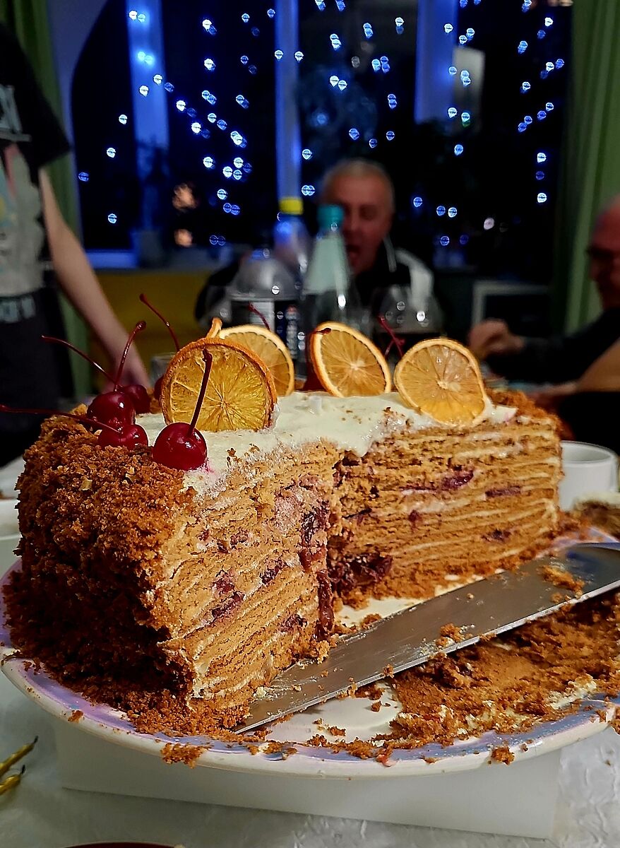 Медовик с вишней. Собственного производства, ну или мама лепила
