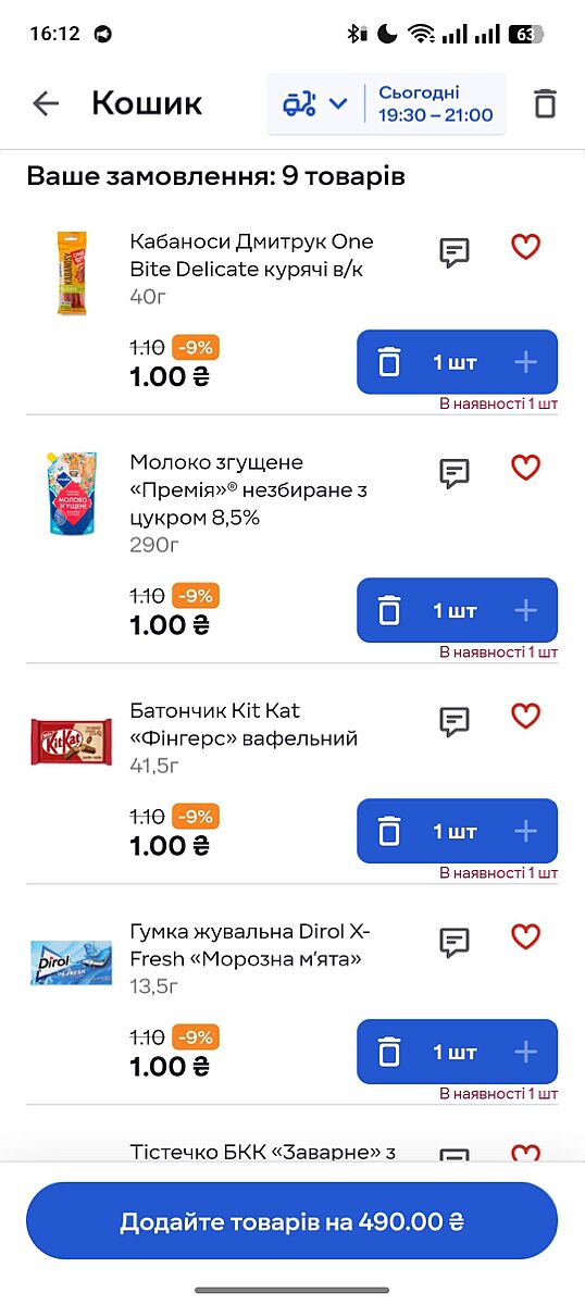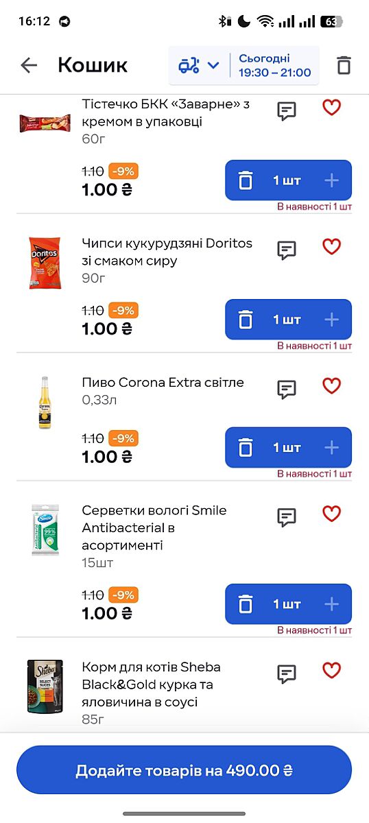 Напевно залежить від міста та магазину, загальна кількість товарів обмежена і на одне замовлення можна по одному товару по 1 грн