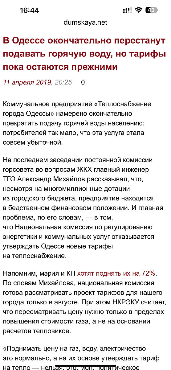 Потому что централизованной горячей воды в Одессе нет, даже официально с 2019 года, а реально с 90х! У них в доме какой-то автономный нагреватель стоит.