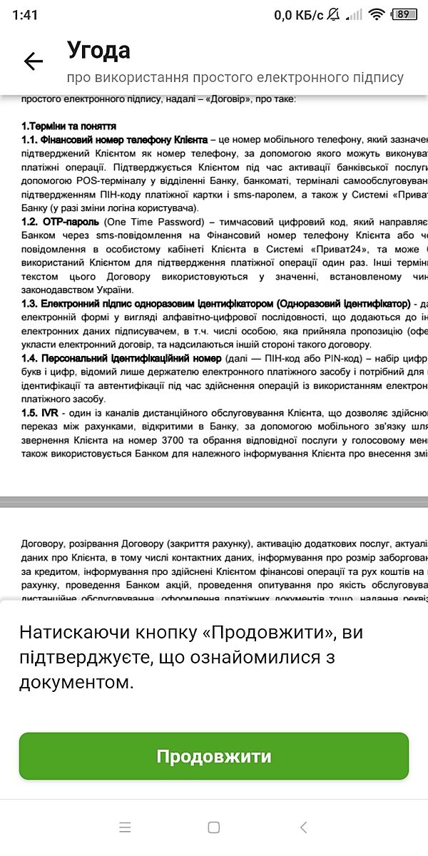 Доброй ночи, появилось сообщение, что нужно подписать договор об использовании короткой электронной подписи. Я проигнорировала, но там указанно, что могут ввести ограничения пользования картой. Задумалась. Звоню минут 20 назад на 3700, спросить, вежливый оператор говорит что все просто, подписали и все работает. Хорошо. Но речь идет об скороченном електронном підписі, мне он не нужен, если понадобится я просто закажу. Оператор рассказывает очень сдержанно, что это те же пароли, SMS коды на смартфон, все то, что я ввожу при снятии или подтверждении. Я объясняю, что в договоре нет этого разъяснения, а стоит електронный підпис, а это все разные вещи. Оператор снова, мол все впорядке, имеется в виду, что это подразумевается — код, SMS, и прочее... Да что ж такое? Уже немного повышаю "градус общения", это все хорошо, но в суде, когда не прописаны все нюансы, все учитывается, в данной ситуации, вы мне это все на словах говорите, на "бусаге" я не вижу прописанного этого. Оператор говорит что таковы правила нацбанка, они руководствуются этим всем. Понимаю, что она мне говорит по шестому кругу "интересное все буде добре", спрашиваю как отказаться от скороченного електронного підпису. Ответ): сообщение будет висеть, пока не подпигите. Хорошо. Как отказаться? Он мне не нужен. Никак. Хорошо. Чем руководствуется Приватбанк? Прикрывается Нацбанком (одна и та же информация по кругу). Прошу выслать мне в чат Приват24 инструкцию по которой я не могу отказаться — не может. У нее нет на это все инструкции. Гладит то, что ей положено.