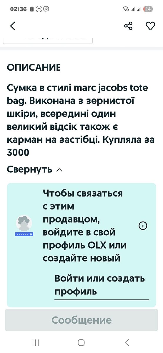 Ми можемо переслати текст звернення, що не містить персональних даних третіх осіб, або іншої інформації, яка адресована виключно OLX.ua, якщо ви напишете нам в «Чат» 🙂. Ми також зробимо усе можливе, щоб зв´язати вас із представником правовласника, від якого ми отримали скаргу.