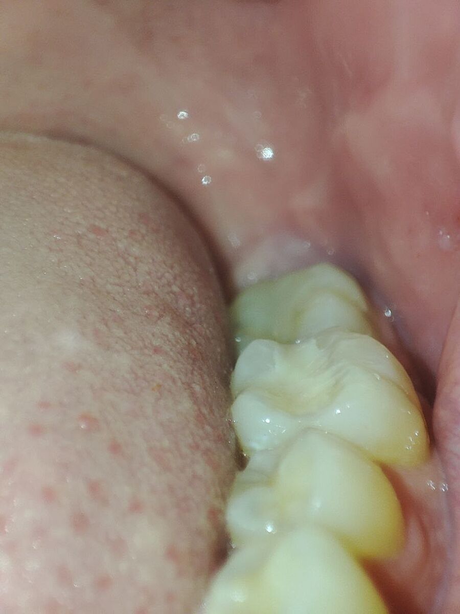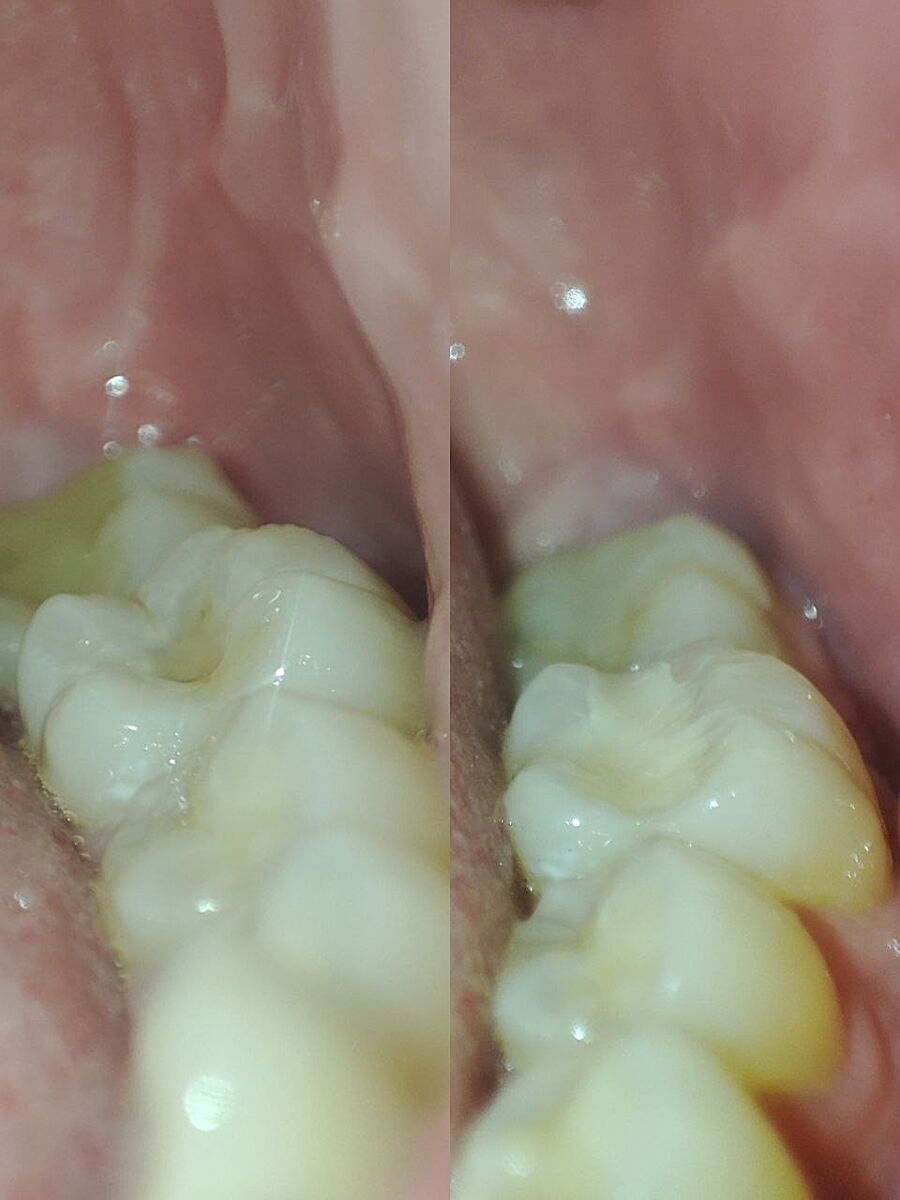Сегодня сделала пломбу на 6-ом жевательном зубе. Изначально года 4 назад в центре зуб слегка стерся (именно не зубные бугорки, а в центре лунка именно) и примерно год назад началось образовываться пятно, которое потом переросло в неособо большой кариес.