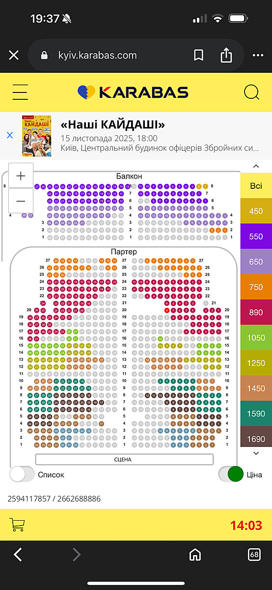 Вистава сподобалась. Сумська навіть не бісила, цілком органічно в цій ролі. Були десь півтора року тому, ціни були значно нижчі, ряд був 17, здається. Точно не рекомендую так далеко і балкон теж не варто. Зара не знаю як, а коли були ми, мікрофонів не використовували, все в живу, через це не дуже добре чутно на останніх рядах, та й розгледіти деталі важкувато.