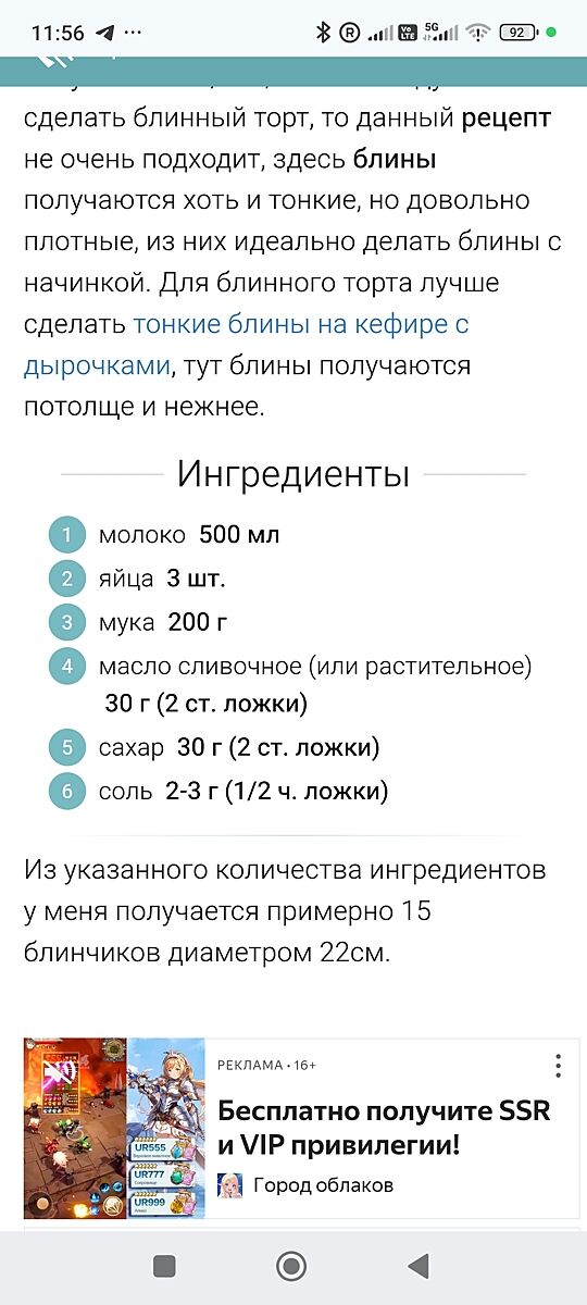 Вот рецепт. Сорри, но сайт руснявый, поэтому скрин. Это идеальная пропорция для блинов. Никакие блины на воде пол на пол и тп по вкусу не сравнятся.