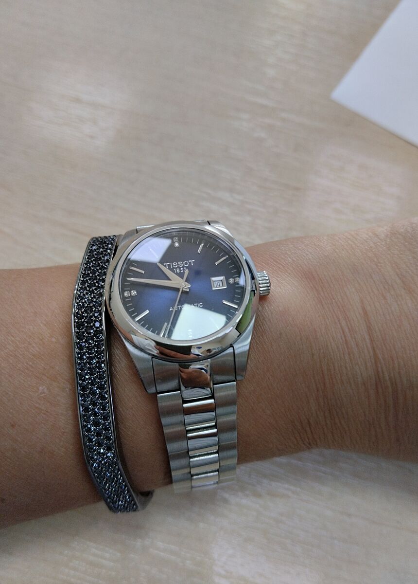 У меня Тиссо, с синим циферблатом и бриллиантами. Очень люблю их. Вчера показывала их.