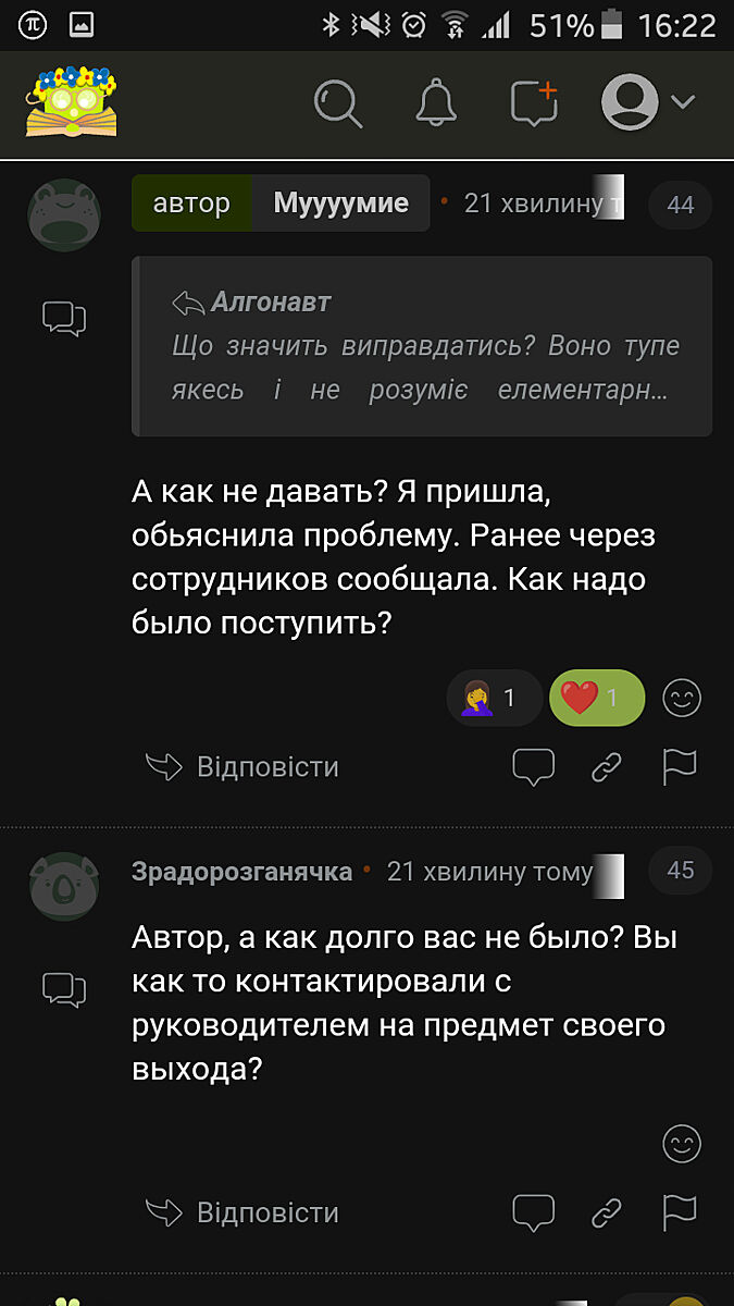 Вызвал начальник по поводу прогулов, обьяснила, что была в депрессии после потери мужа, он сразу "Но вы же взрослая женщина", "Почему вы ведете себя как ребенок". Я ничего не смогла ответить, ушла с опущенной головой, пристыженная. Мало того, что был стресс, что жить не хотелось, не то, что работать, еще и начальство вот такое. И что я должна была сказать? Как оправдаться?
