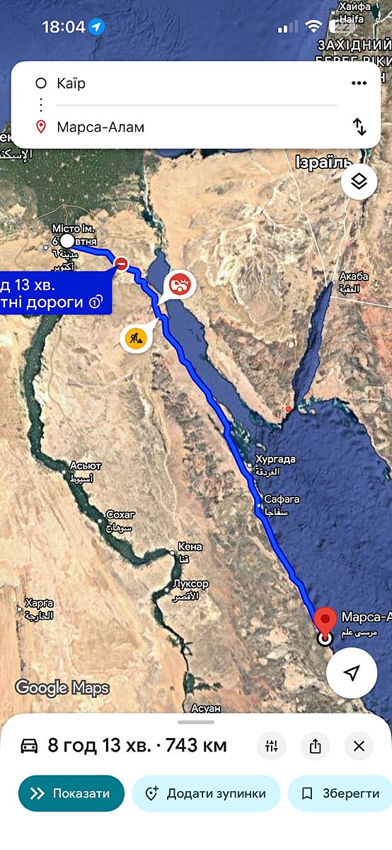 Гугл карти показують що ближче з Хургади чим з Марса Алама