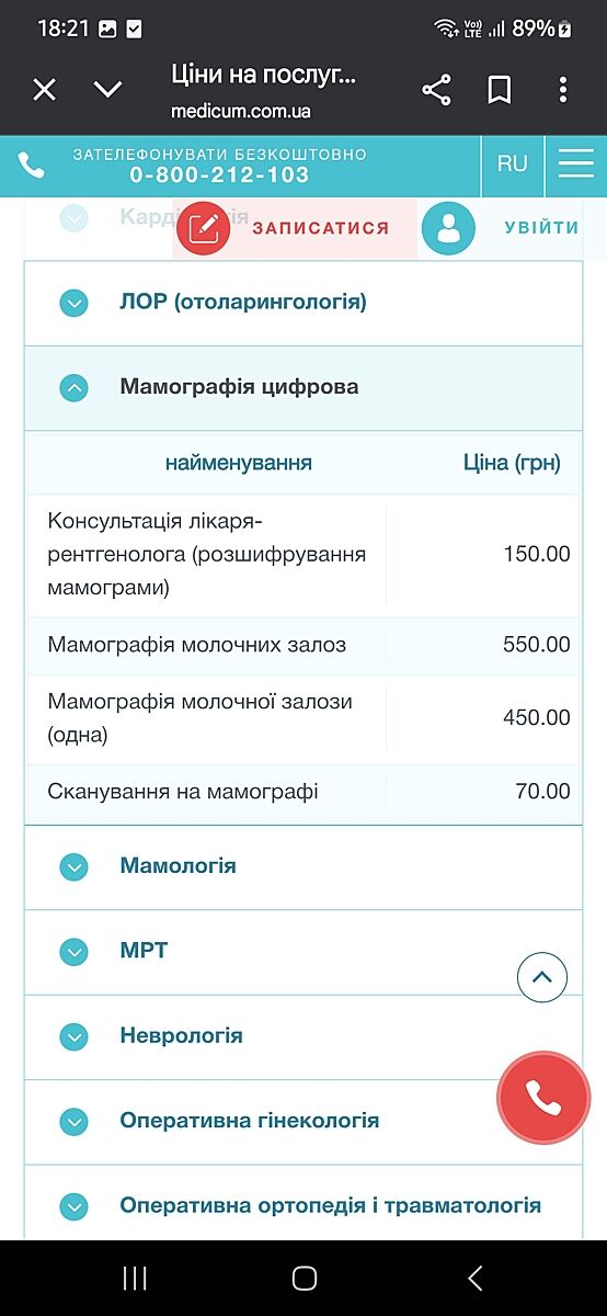Звонила в Медикум - маммография 1500 грн.