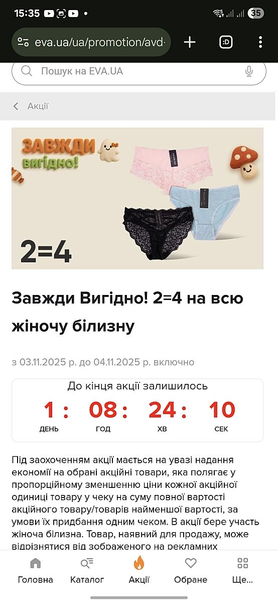 Ещё есть акция 2=4 на женские трусы и Патрисию Ледо.