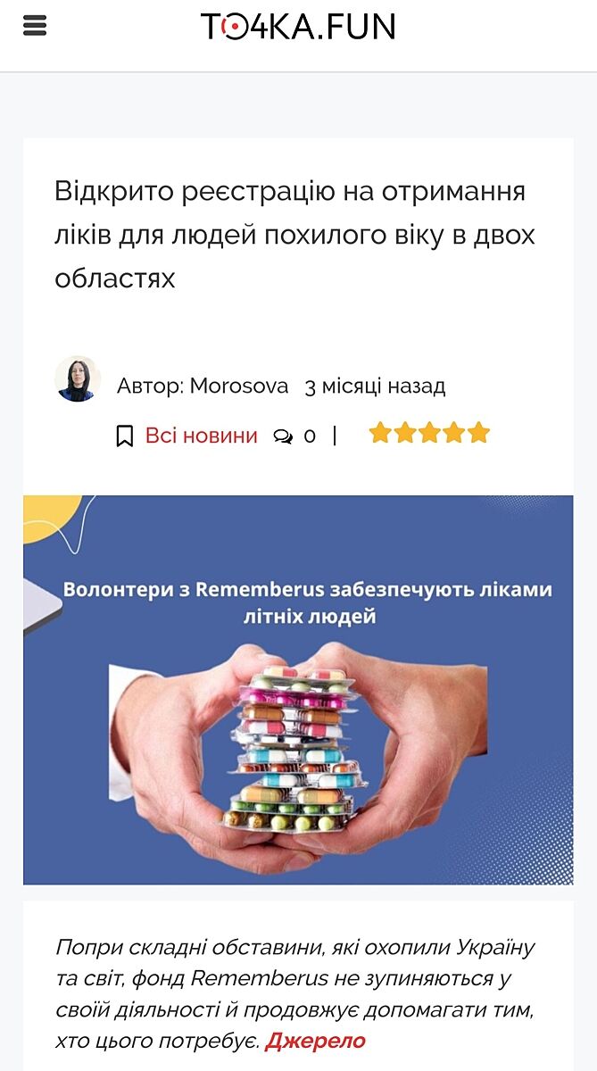 Позаминулого року отримувала ліки поштою зі знижкою, від "Ліки24", цього року - від якогось благодійного фонду. Обидва рази пощастило, бо не всім давали, та й дізналась випадково.