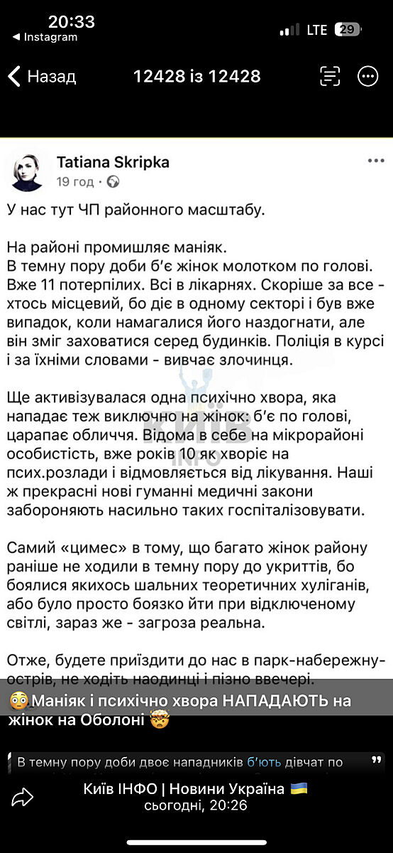 Для этого они должны совершить преступление. Иначе как в нашем прошлом доме (На Оболони, кстати): ненормальная и агрессивно к соседям и прохожим приставала, кричала что-то, размахивала руками. И мусор из окна на головы выкидывала регулярно, и голая по подъезду и на улице ходила, и соседей снизу заливала, а дверь ЖЕКу не открывала. Мы в подъезд зайти боялись, если она была поблизости. Не встречаясь взглядом, десятой дорогой обходили, чтоб не прицепилась. Ничего полиция с этим сделать не могла.