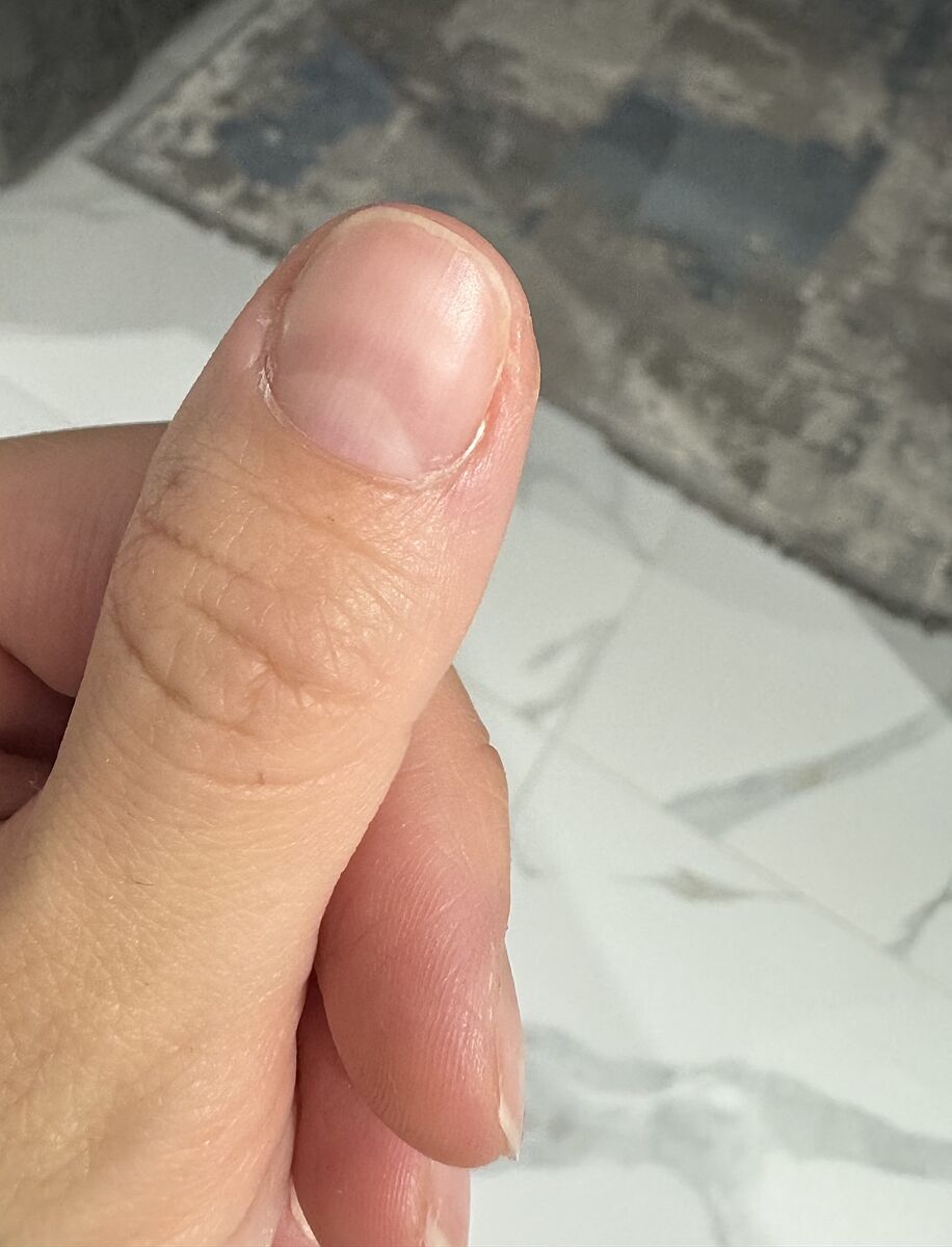 Добрий вечір. Місяць потому зняла гель лак. Два великі нігтя виглядають дивно. Якийсь темний колір біля кутикули. Всі інші нігті звичайні. Чи може це бути патологією?