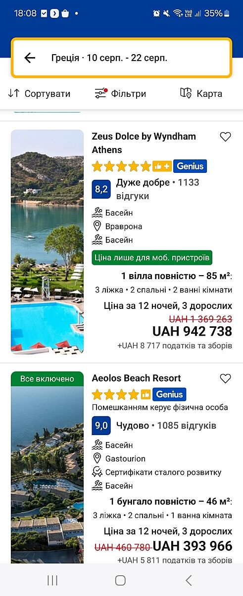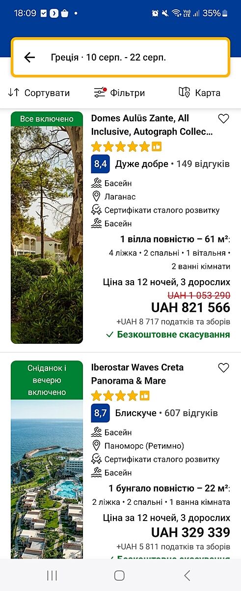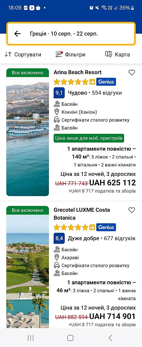 От в букінг забито 12 ночей, все включено і 2 спальні на 3х дорослих