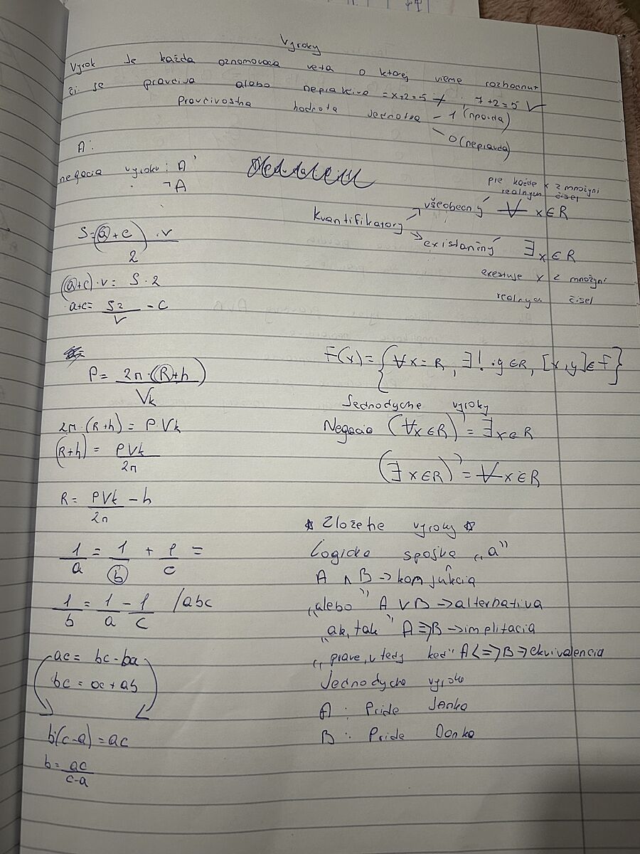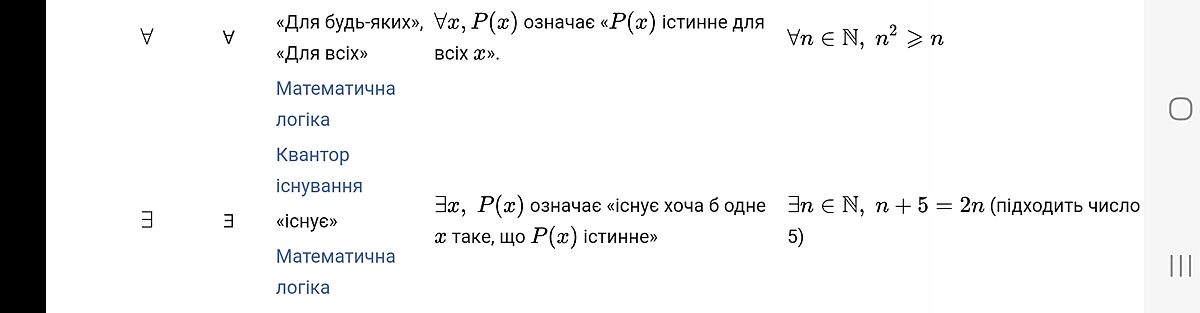 Значки там в принципі розшифровані в конспекті ’для всіх дійсних чисел х’ та ’існує таке дійсне число х’