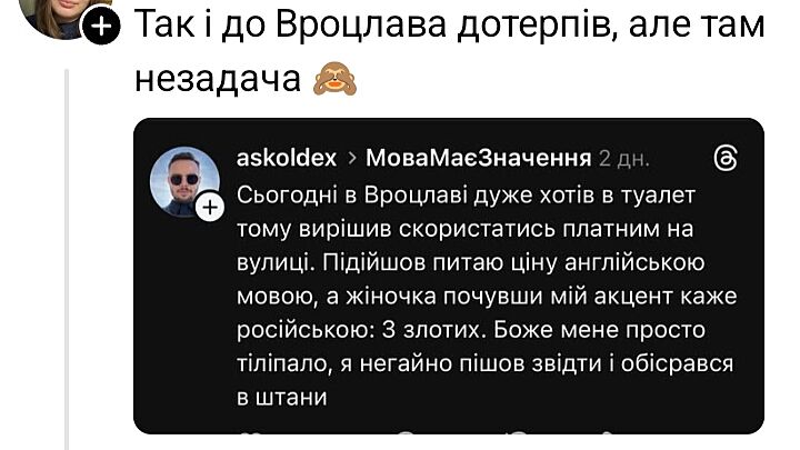 Точно, там миллион тупых тем про мову. Типа, как же мне больно и зло берет смотреть на украинских подростков в Германии, которые общаются по-русски. Прям кушать не могу...