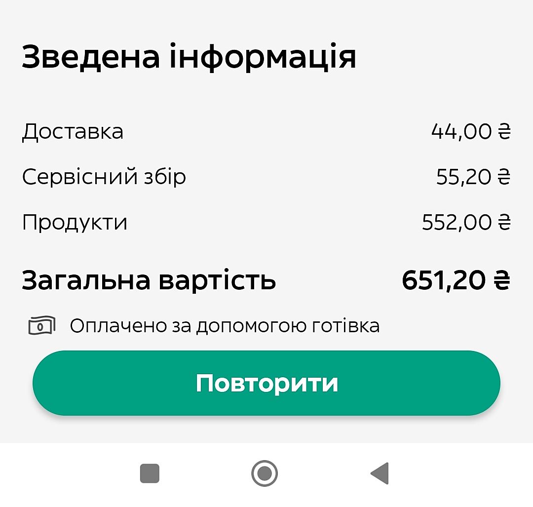 Замовили додому на трьох дві картоплі і два соуси, три гамбургери і дитині какао. Доставка глово вийшло 650. Гамбургери по 100. Соуси по 21. Востаннє була в Макдональдс влітку, брали Морозово. Але тоді наче було дешевше