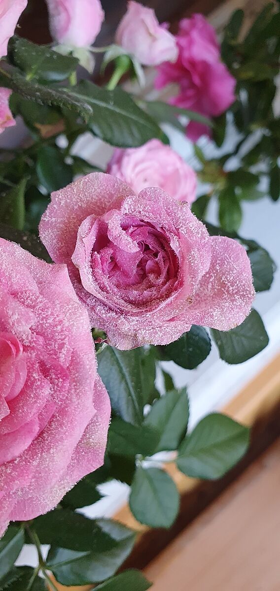 А сами цветки покрылись какой-то белой пудрой, как пыльцой что ли... И вянут даже молодые бутоны